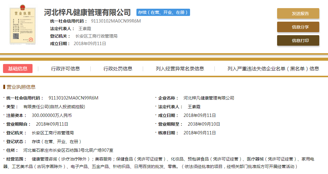 直销头条网编辑在国家企业信用信息公示系统查询到河北梓凡健康成立于2018年09月11日,注册资金300万人民币(实缴资金0元)。法人代表王素霞,行政董事兼经理王素霞,监事王士威,自然股东有王素霞、王士威。 ![]() 河北梓凡健康奖金制度: 一、经销商板块 1、客户购买价值2.5万的氢氧机一台即成为公司的经销商,具有市场销售的权利。 2、成为经销商的客户,每帮助公司销售一台氢氧机,可获得20%的提成。 3、如果某经销商销售两台氢氧机,且此经销商所属销售团队每人完成2台销售任务,则此经销商及销售团队均可额外获得每台4%的销售提成,提成数量上限为14台。 4、如果某经销商销售两台氢氧机,且此经销商所属销售团队每人完成2台销售任务,累计达到6台,即可成为公司VIP经销商,可享受公司新增销售业绩3%的加权分红,分红周期为每周一次。 5、如果某经销商销售两台氢氧机,且此经销商所属销售团队每人完成2台销售任务,累计达到14台,即可成为公司股东,可获得公司赠送原始股权一万股。享受公司新增销售业绩10%的加权分红,分红周期为每周一次。成为公司股东的经销商,不再享受VIP经销商的分红待遇。 6、一年内为公司销售5台氢氧机的股东,可享受公司全年销售业绩2%的加权分红,年终计算。 二、开店板块 1、开店分为两种级别,分别为标准店和旗舰店。 2、成为公司的经销商方可具备申请开店的资格。标准店投资8万元,公司配送5台氢氧机;旗舰店投资16万元,公司配送10台氢氧机。 3、标准店每销售一台氢氧机,除可获得20%的提成外,还可获得10%的店补和3%的服务费。 4、旗舰店每销售一台氢氧机,除可获得20%的提成外,还可获得10%的店补和5%的服务费。 5、标准店A为公司发展一家新店B(无论是标准店还是旗舰店),则店A可获得店B销售额2%的销售提成;如果新店B再推荐一家新店C(无论是标准店还是旗舰店),店A可获得店C销售额1%的销售提成。 6、旗舰店A为公司发展一家新店B(无论是标准店还是旗舰店),则店A可获得店B销售额3%的销售提成;如果新店B再推荐一家新店C(无论是标准店还是旗舰店),店A可获得店C销售额2%的销售提成。 7、经销商或任何级别的店主,为公司发展一家标准店,可获得每月2000元的工资补助,发放时间为每月15日,发放周期为12个月;为公司发展一家旗舰店,可获得每月4000元的工资补助,发放时间为每月15日,发放周期为12个月。 说明:以上各项补助和提成,公司均要收取税收和平台管理费用共计10%(工资补助除外) |