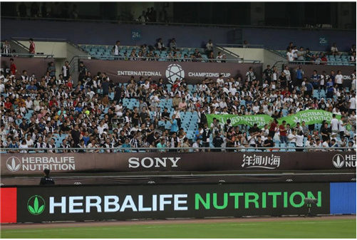 康宝莱作为本次国际冠军杯的合作伙伴,在本场比赛的赛场上尤为瞩目!场内品牌视频、场边广告等广泛曝光,在这场重大赛事中全方位彰显品牌魅力。