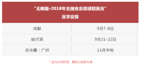 作为一家提供高品质中草药健康产品和服务的企业,无限极致力于弘扬中华优秀养生文化,倡导饮食、起居、运动、情志四合理。无限极将持续支持体育运动,鼓励全民健身,推动全民健康。 上海赛区的比赛已落下帷幕,紧接着“无限极•2019年全国业余排球精英赛”将陆续在全国其他城市举办: