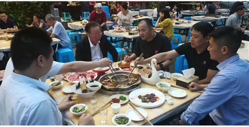 走访结束后,徐董和李总与经销商龙总、江总、业务经理等进行简单用餐时,沟通、探讨了终端增量方案,今年重庆永辉连锁店销售可达到1800万,2020年目标突破3000万,通过增加项目及创新推进来发展市场,比如永辉超市自有品牌OEM参与服务。