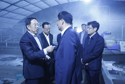 【直报网北京11月11日讯】(好医生)11月2日下午,威海市委书记王鲁明、市委秘书长侯世超、荣成市委书记书记包希安等领导来到集团总部视察,在虎山镇党委书记王树恒、镇长张楠,公司董事长唐传勤、常务副总裁梁卫刚的陪同下,先后视察了好当家天海湾牧场、海参博物馆、海翔食品检测中心、新建育苗场施工工地、荣旺海参加工厂等处,对好当家“一只海参百亿产业”项目建设情况进行深入全面的了解。