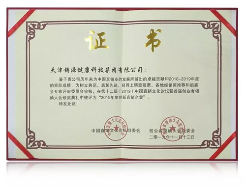 【直报网北京12月18日讯】(铸源)近日,铸源集团荣获由中国直销文化论坛组委会和创业者领袖大会组委会颁发的荣誉证书,鉴于铸源集团历年来为中国直销业的发展所做出的卓越贡献和实际成绩,为树立典范,表彰先进,经网上调查投票,各地经销商推荐和组委会专家评审委员会审核,铸源集团在第十二届(2019)中国直销文化论坛暨首届创业者领袖大会颁奖典礼中被评为“2019年度创新直销企业"。 “2019年度创新直销企业"的称号对铸源集团来说,不仅仅是一份荣誉和肯定,更多的是责任和期许。 铸源是一家集健康产品研究、开发、生产、销售、服务于一体的大型综合性集团企业。他坚持、坚守回归行业的本源本质,把学习、实践、积累、改革作为企业发展的核心动力,在不断发展,不断开拓市场的过程中,做到让市场规范、稳健、永续发展。铸源成立至今已走过十年,正是有着十年的坚持,十年的积累,十年的进取,才有今天的荣誉和收获,“2019年度创新直销企业"这不正铸源十年最好的礼物吗?