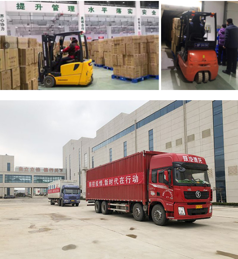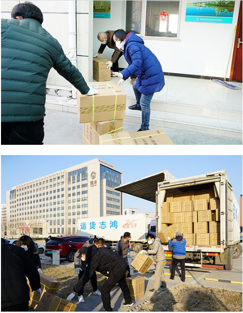 烟台员工克服物流全面停运的影响,紧急沟通,调配七台加长货车,保障物资顺利起运。