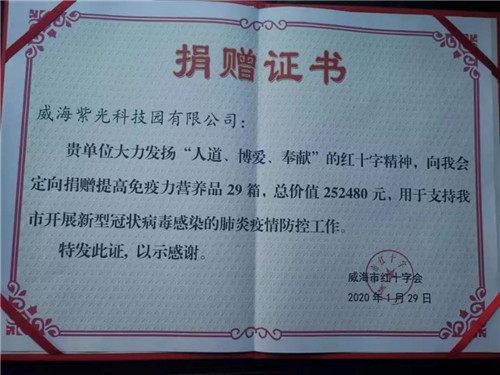 ![]() 【直报网北京2月5日讯】(威海紫光)新型冠状病毒肺炎疫情自爆发以来,一直牵动着每一位华夏儿女的心,为抗击疫情,全国人民众志成城,齐心战“疫”! ![]() 面对疫情蔓延全国的严峻形势,威海紫光立即行动,1月29日,向威海红十字会捐赠价值25万多元用于提高免疫力的营养保健品。 ![]() ![]() ![]() 一方有难,八方支援,威海紫光相关负责人表示:“威海紫光22年以‘专注做健康产业,专业做国人保健品’为使命。在疫情面前,我们要尽微薄之力,助力武汉!助力中国!也坚信在各方努力下,一定会打赢这场战役。” ![]() ![]() 威海紫光也将做好内部部署,要求防疫工作一定注意细节,确保责任到位、工作到位、措施到位,切实履行好企业在疫情防范中的重要职责,为政府分忧,为百姓解难! ![]() ![]() 此次威海紫光捐助之举获得中国山东网、今日头条、生活帮栏目、闪电新闻、海报新闻、中婴网、母婴商情等多家新闻媒体报道。 ![]() ![]() ![]()