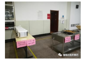 明仁福瑞达 早上6:30,明仁福瑞达餐厅,餐厅员工到岗进行备餐准备工作。 为了支援疫区用药,明仁福瑞达旗下小儿解感颗粒生产线紧急复工。战斗的不仅仅是生产线,作为服务保障的员工餐厅,全力做好餐厅各区域的消毒并为忙碌在一线的员工送上了热腾腾的饭菜,用实际行动,彰显了后勤保障的价值。为避免人员交叉感染的可能性,餐厅实行进门消毒、间隔排队,测量体温后,一人一桌,快速用餐。结束一天的忙碌后,一天三次全面消毒的班车会将大家安全送回家,保障了员工的安全和身体健康。