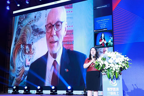 随后杨森教授通过视频连线,与现场观众对话,顾铭博士亲自翻译。杨森教授讲述了他与中国40年来的不解之缘,与顾铭博士17年,既是师生更是搭档的深厚情谊。谈到了贝瑞森创建十年,在科技创新上经历的艰辛与取得的成就。