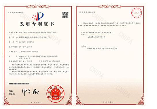 【直报网北京8月11日讯】(晶泰)近日,晶泰创新研发的“一种大规模制备单链DNA的方法”和“适用于FFPE样品的基因表达定量的实时定量PCR方法”正式获得国家知识产权局授权,并取得发明专利证书。 一种大规模制备单链DNA的方法 本发明提供了一种适用于实验室大规模平行制备单链DNA的方法。具体来讲,所述方法包括以下步骤:1)合成可重复生产单链DNA的模板,其中,合成时在所述模板的5’端和3’端分别为启动子序列和一段通用接头序列;2)模板的纯化;3)对步骤2)纯化的模板进行体外转录反应合成RNA;4)以步骤3)中得到的RNA为模板进行逆转录反应合成单链DNA,其中逆转录反应的通用反转录引物为步骤1)所述通用接头序列的互补序列,并且所述通用反转录引物的dTTP核酸被dUTP核酸取代;5)使用UDG酶对步骤4)中逆转录反应合成的单链DNA末端带有的通用反转录引物序列进行消化,以对其纯化。