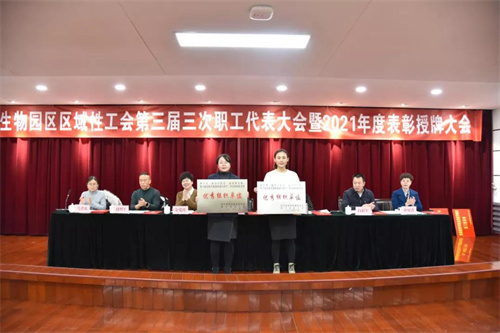 金诃动态 【直报网北京12月28日讯】(金诃藏药)2021年12月24日上午,生物园区区域性工会第三届三次职工代表大会暨2021年度表彰授牌大会在青海国家高新技术产业开发区生物园区管委会隆重举行。金诃藏药股份有限公司工会主席马君花、工会委员代表、职工代表参加了此次会议。 会议审议通过了《生物园区医药制药行业工资专项集体合同》等5项集体合同,金诃藏药工会主席马君花作为生物园区医药制药行业职工方首席代表与医药制药行业企业方代表签署了《生物园区医药制药行业工资专项集体合同》。 ![]() 随后,会议集中表彰了园区各类先进集体和个人,并对工会各类专项工作中做出表率的基层工会颁发了“以奖代补”活动资金。会议授予金诃藏药股份有限公司等7家单位“2021年度群团工作先进集体”荣誉称号;授予金诃藏药股份有限公司QC工段“西宁市工人先锋号”先进班组荣誉称号;为金诃藏药股份有限公司等2家单位荣获“西宁市建功十四五,奋进新征程,聚力建设现代美丽幸福大西宁劳动和技能竞赛优秀组织单位”授牌;为金诃藏药成功组织2021年度青海省职工职业技能大赛暨西宁市制药企业职工职业技能竞赛、职工岗位技能提升培训颁发补助资金。同时,工会委员李金环、周海艳、马君花分别荣获2021年度优秀工会工作者、工会优秀通讯员、工会防疫先进个人荣誉称号。 ![]() 2021年度群团工作先进集体表彰 ![]() 工人先锋号授牌 ![]() 西宁市劳动技能竞赛优秀组织单位表彰 ![]() 青海省中藏药职工职业技能大赛承办经费补助 ![]() 职工岗位技能提升培训经费补助 ![]() ![]() ![]() 2021年度工会优秀工作者、工会优秀通讯员、工会防疫先进个人表彰