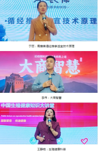 在此次三八妇乐德宸系统青囊集低中频循经推拿(康复)技术交流体验会上,德宸系统金牌讲师于丽为大家带来《青囊集循经推拿适宜技术原理》专业课程;李伟为大家带来《大商智慧》专业课程;王静艳为大带来《生殖健康科普》专业课程;邓振华为大家带来《心灵之旅》专业课程。 优秀志愿者代表石林红、居籽莟、曾莉、孙静江、郭桂华、李小梅为大家展示青囊集低中频循经推拿(康复)技术理疗手法;德宸系统健康顾问负责人王东为大家带来《技术手法》总结专业分享。