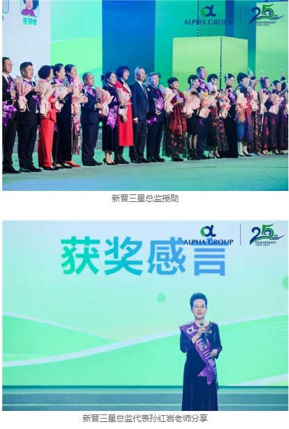 高教授和安发终身荣誉奖获得者、安发董事于淑芹老师共同为新晋安发董事苏长剑老师授勋,左右滑动领略苏长剑老师的风采 当卓越的安康、安健董事和星级总监在聚光灯下走上红地毯,站上万众瞩目的大舞台,荣耀加冕时,当豪车奖得主、优秀店长获奖者上台领奖时,榜样的力量激荡在每一个有梦想的安发人心间。