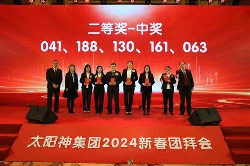 【直报网北京2月1日讯】(太阳神)玉兔欢跳辞旧岁,祥龙腾飞迎新春。2024年1月31日,太阳神新春团拜会在广州香格里拉大酒店隆重举行,太阳神人齐聚一堂,畅叙抒怀,共迎新春度佳节。 年会正式开始前,当然少不了合影的仪式感!太阳神人怀揣着激动的心情步入会场,在合影区定格这一美好瞬间。 ![]() 01龙腾鼓啸,掀开晚宴序幕 金龙腾飞,瑞气升腾。伴随着掌声与欢呼声,广东太阳神集团有限公司董事长怀汉新携集团高管入场,一首气势磅礴的队列歌掀开了年会序幕。 ![]() ▲广东太阳神集团有限公司董事长怀汉新携集团高管入场 ![]() ▲全场高唱太阳神企业队列歌 02集团领导新春团拜致辞 ![]() ▲广东太阳神集团有限公司总经理潘皓皓致新春贺词 晚宴上,集团总经理潘皓皓受集团董事长委托致辞。 潘总表示:回首过去的一年,我们在“整装奋进新征程”的指导思想下,众志成诚,以积极的心态,攻坚克难。潘总代表集团,对集团各个经营团队、对全体太阳神人表示衷心的感谢,谢谢大家的真诚理解,谢谢大家的合作进取,谢谢大家为集团打开经营困局做出的努力和贡献! 征途漫漫,惟有奋斗!太阳神人30多年的艰苦发展历程,刻骨铭心,永远难忘!随着新的一年的到来,我们再次站在了时空的新起点。唯有客观认知现有市场经营和生产经营传统模式的缺陷,科学分析创新经营模式可能出现的风险所在,完善面对风险危机的应对策略,充分把握集团产权体制改革的有利势头,精心筹划,发起业务重组第二阶段战役,以此带动组织架构、人事结构和成本结构的再次重组,集团才能打一场彻底的翻身仗! 太阳神集团,向来都坚持以现代企业管理制度为管理机制的模板;向来都在谋划为“想做事、能做事”的团队,搭建进一步的发展平台和空间。新的一年,让我们继续保持攻击型的心态,坚持滚动式发展的策略取向,审时度势,乘势而上,再谱新篇! 籍今晚的盛会,向各位同事拜个早年!祝愿我们共同为之奋斗的太阳神事业,薪火相传、砥砺前行!祝各位工作顺利、身体健康、阖家幸福、龙年龙精虎猛,万事如意! ![]() 集团领导上台向全体太阳神人祝酒,举杯共贺新春,祝太阳神事业蒸蒸日上! 03年会盛典,活力全开 喜庆的年会晚宴,精彩的舞台表演成为不可或缺的一环。本次晚宴节目汇集了独唱、杂技、喜剧、魔术等多种艺术形式,舞台星光闪耀,现场气氛热烈、掌声不断,荟萃成一场慷慨激昂的视听盛宴! ![]() ![]() ![]() ![]() ![]() 04红包、抽奖不断,喜气连连 节目间隙更是穿插了红包雨和抽奖活动,直接将会场氛围感拉至高潮,而金额高达5位数的特等奖更是嗨爆全场,让人直呼过瘾!快来康康这“泼天富贵”究竟花落谁家? ![]() ![]() ![]() ![]() ▲恭喜以上获奖者,祝全体太阳神人2024好运连连