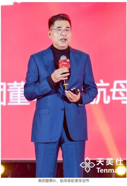 流水不争先,争的是滔滔不绝。天美仕总裁贺勇通过 “围棋高手李昌镐”与“医祖扁鹊”的故事告诉大家,真正的战略在于稳定性与可持续性,在于可以创造长期价值。 天美仕2024年,产品战略与发展战略双管齐下,坚持深耕高科技大健康产品,打造细胞健康管理产品产业链,同时升级基础配套设施,强化教育帮扶体系,为大家提供更加稳健持续的发展平台,更好的撬动大健康蓝海市场。 本次发布会特别推出全新升级产品“黄精蛋白肽Ⅱ”,天美仕商学院副院长包昕川从工艺升级出发娓娓道来,阐述了新产品升级后的优势:更好的保留活性成分,提升蛋白质的含量,更易吸收,获得现场一致好评。 与此同时,天美仕商学院副院长赵一新推出全球首款NMN细胞生殖抗衰产品,五大革命性制备技术、三大专利加持,让新产品驶入新赛道,跑出加速度。 在进行了隆重的颁奖表彰后,盛典的尾声也迎来了高潮时刻。集团董事长、航母掌舵者李世伟登台与市场伙伴共襄盛举。
