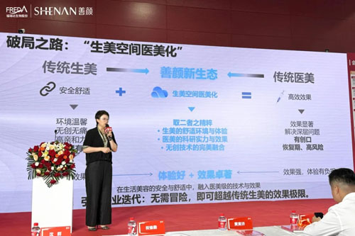 项目的打造并非单一产品输出,而是构建了“产品+仪器+专业流程”三位一体的闭环服务体系,确保了操作的标准性、效果的稳定性与体验的舒适性,展现出善颜以科技驱动体验升级的强大产品力。“生美空间医美化”理念专题演讲   定义美业生态新未来