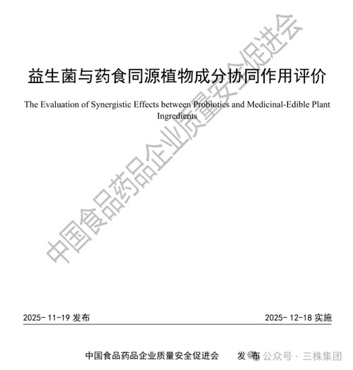 ![]() 【直报网北京12月17日讯】(三株)2025年11月19日,由中国食品药品企业质量安全促进会组织并主持起草,众多企业单位、高校及科研机构共同参与起草的《益生菌与药食同源植物成分协同功效评价》团体标准(标准号:T/FDSA 0104-2025)制定出台。 为表彰主要起草人之一——三株集团董事长、人文博士吴炳新,及其带领的三株福尔制药公司起草制定工作的深度参与和科研技术、专业力量的支持,中国食品药品企业质量安全促进会特向吴炳新博士、三株福尔制药公司,颁发荣誉证书。 山东三株发酵中药研究院副院长、三株福尔制药有限公司生物发酵工程总工程师吕美女士与三株福尔制药公司范云飞总经理等三株集团专业人士也共同参与了该团体标准的起草,并获荣誉证书。 本次荣誉的获得,不仅是对吴炳新博士带领的团队专业能力与行业贡献的高度认可,更是对三株福尔制药在益生菌与天然植物成分协同领域技术实力和研发积淀的充分肯定。 《益生菌与药食同源植物成分协同功效评价》团体标准(标准号:T/FDSA 0104-2025),明确规定了益生菌与药食同源植物成分协同作用评价的术语和定义、基本原则、评价指标体系、评价方法、评价流程、结果判定及分级、质量控制与保证、评价报告等内容。 ![]()