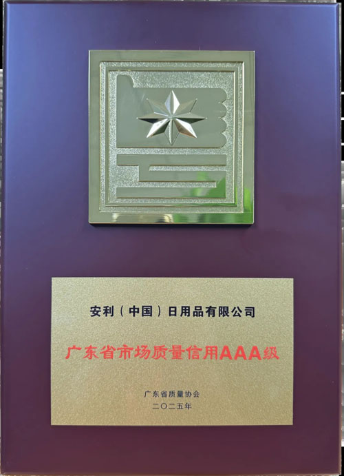 安利(中国)凭借深厚的质量诚信文化和卓越的经营管理实践,荣获广东省质量协会授予的2025年度广东省市场质量信用 “AAA”认证,“AAA”等级是该认证的最高等级。此次评价基于《企业