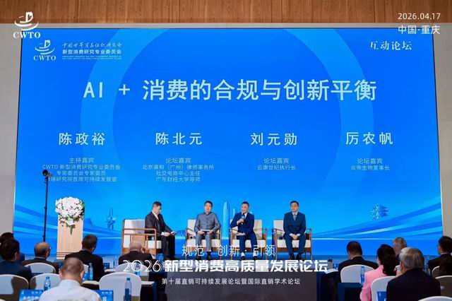 4月17日,由中国世界贸易组织研究会主办的2026新型消费高质量发展论坛在重庆召开。论坛以"规范 创新 引领"为主题,立足扩大内需战略基点,聚焦新型消费领域合规建设、科技创新与价