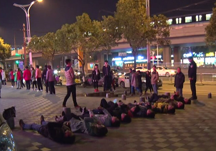 带队的说,要让他们克服娇气 【直报网北京1月14日讯】(西陆网)1月12日晚上8点半左右,在迈皋桥附近和燕路289号广场上,11名年轻男女扯开嗓子大喊,不停地叫着“能,能,能”,引发市民报警。民警到达现场后,训练仍未结束,“我们是一个团队,他们刚来上班,要突破一下。”现场带队的说。 民警赶到时,广场周围有不少人在围观,11个年轻人大部分是小伙,穿得也不算多,看起来都有点冷。不过那股劲却是非常足。只见有个小伙子站出来领喊,不停地问:“马云有钱吗?”其他人回答“有”,“那能超过他吗?”“能!”旁边就是一群广场舞大妈,不过这群年轻人的气势和发出的动静显然超过了大妈们,不断地跳着,喊着,随着带队小伙一声令下,所有人竟齐刷刷地躺在了广场地面上。 “每一份努力都会得到回报的,对吗?”“对!”“天道酬勤!”“对!”(小编脑子里突然蹦出《芈月传》里的一句台词:将士们,我承诺你们,从今以后,你们所付出的一切血汗都能够得到回报。)