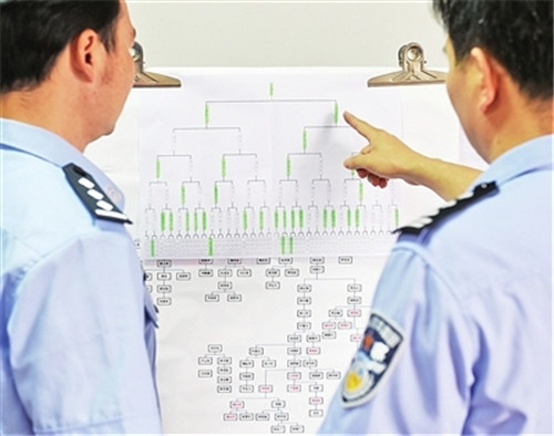 ![]() 办案民警研判传销网络组织结构(记者周洲摄) 【直报网北京5月16日讯】(云浮日报)电子商务、微信等给人们带来了便捷和财富,同时也给一些违法犯罪行为提供了温床,网络传销便是其中之一。近日,云浮市警方一举破获一宗利用微信群进行网络传销的新型案件,参与人数达200多人,遍布广西、湖南、吉林等十多个省(区)市,涉案金额100多万元。 据警方介绍,3月13日23时许,云浮市广梧高速公路平台省际公安检查站执勤民警在执勤过程中截获一辆冲卡小汽车,抓获违法嫌疑人莫×美,在搜查中,民警发现在其携带的笔记簿中,记录了其参与“圆梦互助军团”网络传销活动的相关资料。检查站随即将人车移交郁南县公安局处理。 经审查,莫×美参与了多个“圆梦互助军团”网络传销微信群,涉案的多个微信群主要是以拉人头模式投资作为分配返利。郁南警方在审查中发现该案情重大且犯罪手段新颖,遂将案情上报市公安局经侦支队,由经侦支队与郁南县公安局经侦大队组成专案小组查办该案。 经初步侦查,该网络传销团伙共分成7级,分别是“军长”、“师长”、“旅长”、“团长”、“营长”、“连长”、“排长”,其操作模式为:由推荐人推荐加入“圆梦互助军团”,通过微信转账2000元到“军长”的账号,自动成为“排长”,然后发展下线加入,发展两个下线升级为“连长”,发展下线越多升级越快,依此类推等发展到63份,这个群的人再共同发展64份后,“军长”就华丽出局,获利69000元,全部人晋升一级,然后一分为二成两个群,单号跟“师长”1,双号跟“师长”2,又进行新一轮的招募。目前,犯罪嫌疑人莫×美已晋升至“师长”级。 据莫×美交代,仅在2016年12月至2017年3月期间,其在广州市增城区通过朋友介绍,通过手机微信参与“圆梦互助军团”网络传销投资活动,从中牟取暴利。3月30日专案小组民警在增城区将同案犯罪嫌疑人杨××、谢××、曾××等3人一并抓获归案。 经进一步侦查,该网络传销组织发展迅猛,参与人数已达200多人,遍布广西、湖南、吉林等十多个省(区)市,涉案金额100多万元。上述到案犯罪嫌疑人均对参与组织、领导传销犯罪活动的事实供认不讳,目前莫×美等4人均已被刑事拘留,案件正在进一步侦办中。 “该微信群成员以家庭主妇和中老年人居多,利用成员一夜暴富的贪念,打着朋友间‘互相投资’的幌子,‘以小博大’吸引众人参与的新型网络传销犯罪活动,该网络传销活动主要是采取以‘拉人头’的方式进行‘扩容’获利,即加入一个微信群,投入2000元,不到一个月就能获利6.9万元,从‘排长’干起,一步步升到‘军长’,因无需买卖任何产品,唯一要做的就是‘拉人头’,故极富有诱惑力。”市公安局经侦支队的吴警官说。网络传销具有很强的欺骗性、发展下线的不确定性和极大的隐蔽性,同时网络传销组织的后台网站一般都设立在境外,境内由下线代理人身份组织,经常改头换面后又换一个新的名目出现,给公安机关的侦破工作带来很大的干扰。 据吴警官介绍,网络传销和一般传销一样,都具有两大特征,一是“交纳入门费”,即让你交纳一定的资金或购买一定数量的产品,才能获得“入门”的资格;二是“拉人头”,即加入后,让你发展他人加入其中,形成上下线的层级关系,并以直接或间接发展下线的数量和下线的销售业绩为计算报酬的依据。