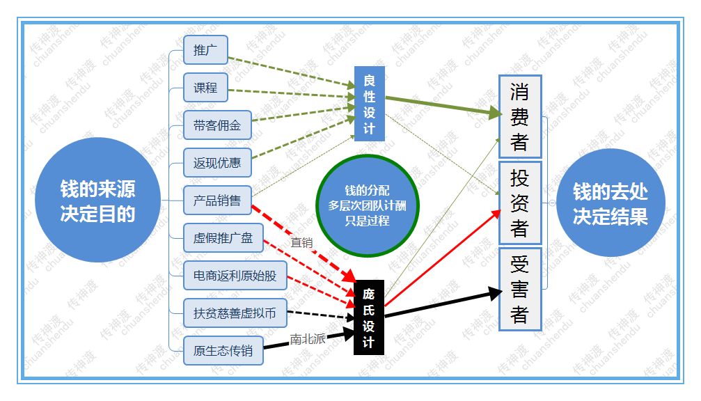 ![]() 【直报网北京4月2日讯】(传神渡)花生日记因传销被罚款,云集品被定性传销,两个新闻都在一个时间段出现,于是社交电商涉嫌传销的问题被媒体放在了桌面来回讨论。 从新闻和自媒体信息里分析,花生日记的团队计酬资金来源分为两个,一个是99员会员费,但发展人数只有7247人,按全额没收也就是70万元,因为这个会员费可以认定为传销入门费。 ![]() 99元是入门费,人头费? 有媒体说这是带血的人头费,这个问题在公开文件里定性很明显不合常理,一堆律师蹦了出来说如何符合传销特征。没错,死磕《禁止传销条例》99员会员升级费是可以说成人头费的,但按约定俗成来说,这个费用是不是有管理费,手续费的含义呢?这99块钱的血是挺贵啊。 死磕《条例》,那我们是不是应该把赃款70万没收,没有顶格罚款200万,只有150万,剩下的七千万谁来解释,那个律师来解释解释。 51层2千万会员 这个来自于阿里妈妈的返利优惠券,层级51人数2000万,但这个钱就与传销相去甚远了,返现佣金是相对良性可持续收入,是正常商业盈利,和传销的入门费是两个概念。 这与直销销售产品提成后再行分配是一个道理,正常商业收入凭什么不能分配,正常带客佣金凭什么不能分配。我赚来的钱想怎么分,就怎么分,只要钱没问题,多层单层只是酬劳计算方法。 花生日记团队计酬的钱的来源是完全符合商业伦理,你带客消费不成功,就不会有佣金分配;有分配就必然有消费,难道消费就是上当受骗产生受害者啦,还是商家获利不当,淘宝获利不当,哪里不当? 一个没有受害者的行为,处罚的由头在哪里?传销是经济犯罪,具有所有经济犯罪的共性特征,就是骗钱。很多人张嘴就是传销三要素,不问青红皂白直接往上套。 简单梳理 ![]() 这是各种多层次团队计酬运用中的轨迹,多层次团队计酬,给社会造成最大误区的是直销,在直销宣传中信息的失真造成夸大宣传等等固有问题,因大单方式,消费行为变成了投资行为,本质产生变异。 但这只是多层次的原始运用和第二次本质的变异,而如今多层次在互联网时代早已经被改造的面目全非,不仅仅产生了第三次变异,还有第四次,我没事还在琢磨第五次。 九种社交电商“传销”的钱哪里来 ![]() 混沌与真空 因为从雅芳公关门的起点开始,我们就整体性的被一个不完整的游戏规则误导,网络时代了,我们还要用上世纪九十年代的目光来审视多层次。 有人问“花生日记没有限制人自由啊,怎么会是传销”,这个落后认知我们都懂得,烧钱多层次推广也是传销吗,返现优惠券的多层次分配也是传销吗。 返利佣金的多层次分配,在线下的版本则是数千万人的消费返利传销盘,撕开一看返利是假的流量是假的,但消费是真的。云集品云联惠这些平台把集资拆东补西,泡沫消不动时警方出手了,薅羊毛的消费者嚷嚷自己没上当没受骗,还妄想继续薅,但成百上千的供货商开始要钱维权了。 可花生日记里,供应商依赖淘宝的超大流量实现盈利而后返利,有羊毛也是淘宝的毛,淘宝这只羊还没说话呢,这可不是只傻羊。 硬科普:多层次团队计酬 法律的初衷是什么?维护合法利益,打击不法收益,可收益合法却又看似违法,何解? 换个角度,多层次团队计酬来说,只是个工具,或者说是个过程,他既可以用于销售和推广,也可以用于集资和诈骗。 钱的来源决定目的,钱的去向决定结果,过程中的团队计酬是一个工具,但具有一定的导向能力,这是书面语言。 口语来说,目前最简单的解释是“刀论” “团队计酬”是一把刀,握刀的人想干什么,这是目的,有人就想削瓜切菜,有人就想杀人放火; 刀法好的, 有人切菜完全没事,有人砍人特别顺溜; 刀法不好的, 有人切菜时砍了人,确实也有想砍人的却切了菜(别笑,很多)。 于是两种刀法不断互相学习借鉴。最终有了一个江湖著名的“刀论”,此论曰: 多层次是把刀,砍人还是切菜,因人而异,所以刀本无罪。 但,刀论过时了! 不仅用刀的人有不同初心,学刀的人有不同刀法,横握竖握,左握右握,千奇百怪,都会有不同的结果。但时代发展太快,无声无息之间,互联网把刀磨成双刃剑了。 所有拿剑的人,还看那篇“三要素”刀谱,指刀为剑,不知道手里这东西还能弹回来自残,甚至自刎。