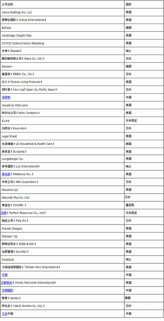 直报网北京4月20日电(直销专业网报道)美国时间17日,著名直销新闻网(DSN)发布了2011年全球直销100强初步榜单,而最终的榜单将在6月正式发布。该榜单所收录全球直销企业收益最好的公司。 100强初步榜单中,虽然遭遇被收购危机,但雅芳依然以113亿美元领跑全球,安利109亿美元紧随其后居第2位,康宝莱涨势明显,以35亿美元攀升至排名第3,玫琳凯排名第6,如新排名第9,爱茉莉排名第16,优莎娜排名第17,嘉康利排名第21,科士威排名第27,宝健排名第38,隆力奇排名第57。