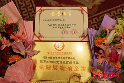【直报网12月11日讯】记者从康婷官方网站了解到,2013年12月8日—12月10日,由中国产业报协会主办,世界直销亚太研究中心、《分销时代》杂志、直销专业网、爱直销公众微信平台协办以及北京海畴文化传媒有限公司承办的2013中国直销产业发展论坛在北京隆重举行。来自全国的政府领导、专家学者、企业高管、主流媒体等1500余人共同出席了此次论坛。我公司因其先进的自主研发核心技术项目和长足稳健的企业发展,在此次论坛上喜获最重量级的“风云2013亚太地区直销行业产业发展龙头企业”殊荣,康婷阳光旗舰系统荣获“风云2013亚太地区直销行业最受尊敬系统”,阳光旗舰系统领导人邢文元先生荣膺“风云2013亚太地区最具影响力品牌直销领袖”,康婷成为了2013年度直销行业的岁末亮点,也振奋了康婷的每一位员工,在2014年厚积薄发收获希望! 2013年第二届中国主流媒体与直销行业峰会精彩纷呈 在第二届中国主流媒体与直销峰会上,中国直销产业论坛组委会主席胡远江先生做了精彩致辞,中国产业报协会秘书长刘灿国先生就直销行业如何与主流媒体完美结合进行了精彩的演讲。此次峰会云集了中共中央宣传部、国务院新闻办公室、国务院参事室办公厅、国家广电总局、中华全国新闻工作者协会、新华社、光明日报、经济日报、经济观察报、中央人民广播电台、中央电视台、中国新闻社、21世纪经济报道、第一财经日报、中国质量报社、搜狐网等20余家中央及主流媒体的领导与各直销企业管理人员齐聚一堂,就媒体舆论导向期望进行对话与交流,会上在场所有媒体都对康婷核心技术——“微生物发酵法生产透明质酸”项目赞不绝口并表示关注。 |