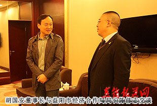 签约仪式后,胡国安董事长在与益阳市委市政府主要领导座谈时表示:益阳产业的升级转型离不开人才集聚与变革创新,绿之韵天城网电子商务总部暨万亩