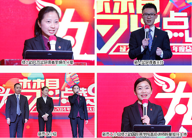 在全场热烈的掌声和大家目光的聚焦下,绿之韵集团董事长胡国安先生做了重要压轴的讲话,向所有获奖者予以了高度评价并衷心感谢,感谢绿之韵所有员工的辛勤付出,及所有关心绿之韵事业的各位朋友,是你们才有绿之韵事业持续健康的发展。董事长胡国安非常深情地向莅临现场的母亲表示感谢,是母亲生他、抚养他、教育他,他才有今天事业的成就。 董事长胡国安告诫大家,绿之韵是一个与家人分享的平台,是一个出新成就的舞台,不管是各位员工,还是经销商都可以成为自己家人的骄傲,学习的榜样。同时,向公司全体上下致以诚挚的新春问候,对2014年各部门坚持不懈、求真务实、兢兢业业的工作,积极化解各种挑战,在各种工作困境中突围,企业始终保持着良性发展势头,取得了一系列新成绩、新突破予以肯定与赞扬!为大家点赞,为年轻的团队点赞,为天城网点赞,为商学院点赞,为第一次投资房地产点赞,为曾经受到批评的员工点赞,为所有在绿之韵事业里奋斗过的朋友点赞……最后,胡国安董事长还表示,希望全体绿之韵人2015年团结协作,再接再厉,谱写辉煌新章! |