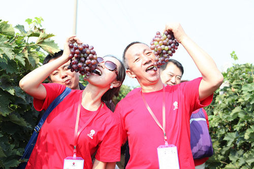 伙伴们在葡萄园里,“战果”累累。 晚上,更加激动人心的一刻来临!1500余名伙伴齐聚烟台金沙滩,在激昂的音乐声中开始了千人红酒沙滩狂欢。狂欢派对上,太阳神营销总部总经理张鸣先致词,他指出,本次烟台研讨会不仅是对优秀经销商的肯定与奖励,更希望全体太阳神伙伴都能积极开拓市场,一起收获事业,感受太阳神快乐直销,一起为实现太阳神三五规划添砖加瓦。 |