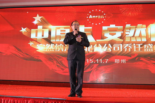 董事长刘润东先生发表精彩讲话 【直报网11月9日讯】(安然纳米)2015年11月7日,安然纳米西北分公司乔迁盛典在郑州弘润华夏大酒店隆重举行。安然公司董事长刘润东先生,营销总裁苏永涛先生,市场决策委委员林和平先生、许广东先生、王利芹女士、刘斌先生及安然伙伴1200余人出席了本次大会,共同见证了西北分公司乔迁盛典的难忘时刻。 伴随着亲切而又感人的手语舞——《安然欢迎你》的感动呈现,大会正式开始。安然公司董事长刘润东先生为大会致辞,表达了公司对西北分公司乔迁的深切祝福和对与会嘉宾的诚挚谢意,并对西北市场战略格局充满了必胜的信心,董事长激情澎湃的致辞赢得了全场雷鸣般的掌声。 营销总裁苏永涛先生发表精彩演讲,他向在座伙伴详述了精彩的市场规划,对西北区域市场的发展充满信心,苏总的讲话振奋了伙伴们的士气,大家对安然事业的未来充满干劲,充满信心。