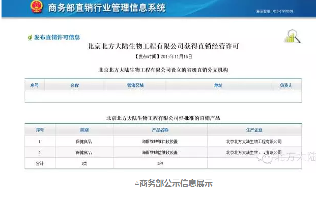 【直报网12月17日讯】(北方大陆)2015年12月17日,北京北方大陆生物工程有限公司获得由中华人民共和国商务部颁发的“中华人民共和国直销经营许可证”。 北方大陆产业集团 构建全球健康排毒生态系统 让健康智慧惠及每个人 北方大陆产业集团是一家横跨大健康产业、医疗美容产业、医药产业,融健康管理、教育培训、金融资本、高端医美等于一身的大型跨国集团企业。主要经营以健康排毒为核心的健康美丽消费品,涵盖了致明德牌五清通体组合保健食品、五清赋补精华牌健康食品;海斯维牌、超力康牌、福迪安牌系列营养保健食品、CELLSPA牌美容化妆品、傲力派牌个人护理系列,“极美订制”医美系列、REBORN抗衰老和健康检测系列,并设有“本源生活汇”店铺连锁运营体系。业务辐射全球43个国家和地区。▲ (原标题:热烈祝贺北方大陆获商务部直销牌照) 责任编辑:小申 解读新闻热点、呈现敏感事件、更多独家分析,尽在“直事儿”微信,扫描二维码免费阅读。