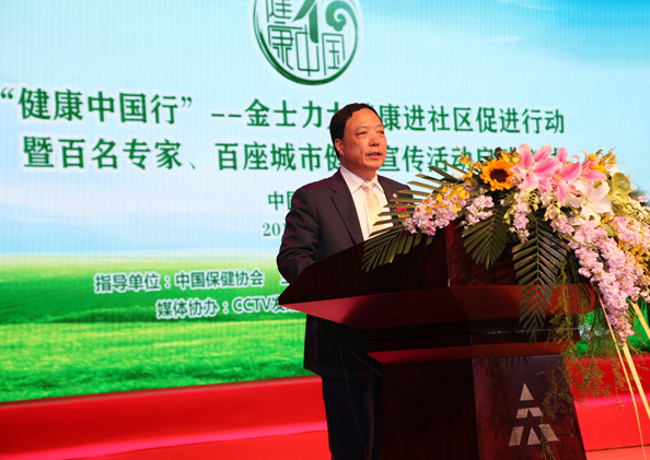 天士力控股集团董事局主席闫希军讲话 与会嘉宾领导在全场热烈的掌声中,共同启动“健康中国行——金士力大健康进社区促进行动暨百名专家、百座城市健康宣传活动”。伴随着大屏幕接连缓缓点亮的区域,展现在人们眼前的是一副承载时代使命共创健康中国的壮美画卷。