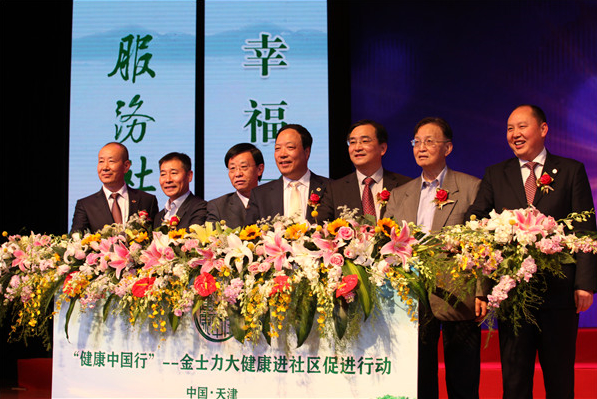 嘉宾共同推动启动杆,标志着“健康中国行”项目正式启动 启动仪式后,在现场雷霆般的掌声中,姚则兵总经理为全国首场“健康中国行”活动举办城市天津授旗。金士力天津分公司经理牛凯先生作为首场活动举办区域负责人从姚总手中接过活动旗帜,自此,“健康中国行——金士力大健康进社区促进行动暨百名专家、百座城市健康宣传活动”正式启动。未来,金士力将以14家分公司为活动承办主体,以天津为起点,辐射全国8大区域,邀请100名健康专家,在全国100座城市开展100场活动,旨在通过健康讲座、健康咨询服务等多样化的形式与大众进行交流互动和健康科普教育,提升全民健康意识,让社会各界共同关注健康,同时引导大众体验大健康服务,全面推进大健康进万家工程。 |