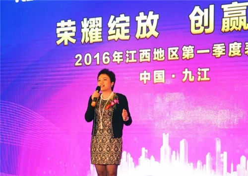 【直报网北京5月6日讯】(金士力)“人间四月芳菲尽,山寺桃花始盛开”,江西九江,山峦黛青,景色宜人,是一座具有千年历史的文化名城,名江名湖名山名人名文,荟萃一身。2016年4月29日金士力“荣耀绽放、创赢未来”2016年江西地区第一季度表彰会也在此如约举行。金士力佳友(天津)有限公司总经理姚则兵先生、华南区销售总监李莉清女士、绩优经销商陈镜宇先生、李钰女士、苗时雨女士、金士如先生、江西市场主要领导人仲柯蒙先生、高级总监江新献先生、吴淑臻女士等800余位经销商伙伴以及特邀嘉宾:在硒临床、硒与人体健康应用方面有着丰富的经验的彭云华教授出席了本次大会,为江西市场谱写出又一个华彩新篇章。 经销商伙伴们表演的舞蹈“万众一心”为大会拉开序幕。华南区销售总监李莉清女士在大会致辞中充分肯定了江西第一季度各位经销商取得的卓越表现,同时,传达了公司提出“服务社区走进家庭”的发展战略规划,强调市场一定要从客户需求出发,提供优质服务,共同打造大健康产业的优质品牌与影响力,积极推进“健康中国行”——金士力大健康进社区促进行动的开展。