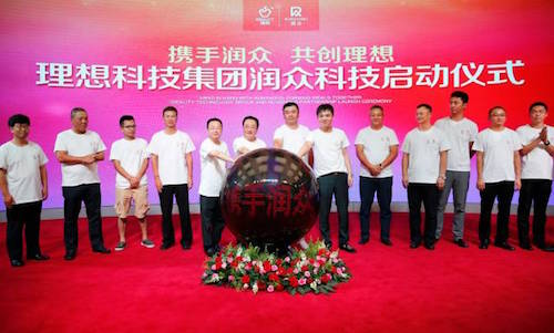 理想科技集团董事长焦家良博士、焦少良副董事长、理想润众科技王刚执行董事、宋佰轩总裁一起为理想润众科技的全新航程按下启动球 |