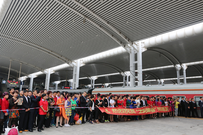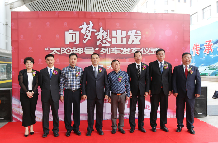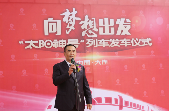 ![]() 朱总、白总、鞠总等领导出席首发仪式 此时的1号站台,尽是喜庆与欢乐。在伙伴们的热烈欢呼声中,朱总首先发表致辞,宣布“太阳神号”列车正式首发!朱总表示,此次在东北区投放“太阳神号”列车,一是为感谢当地各级领导一直以来对太阳神的支持,二是助力为太阳神做出卓越贡献的伙伴们。朱总强调,有太阳神强大的实力做后盾,我们每一位伙伴都将拥有更大的舞台,希望大家都能紧跟太阳神的发展步伐,乘坐“太阳神”号列车,全速前进,向梦想出发!也希望通过“太阳神号”列车,让我们优质的产品和服务为更多的人们带来更健康的身体和更美好的生活。