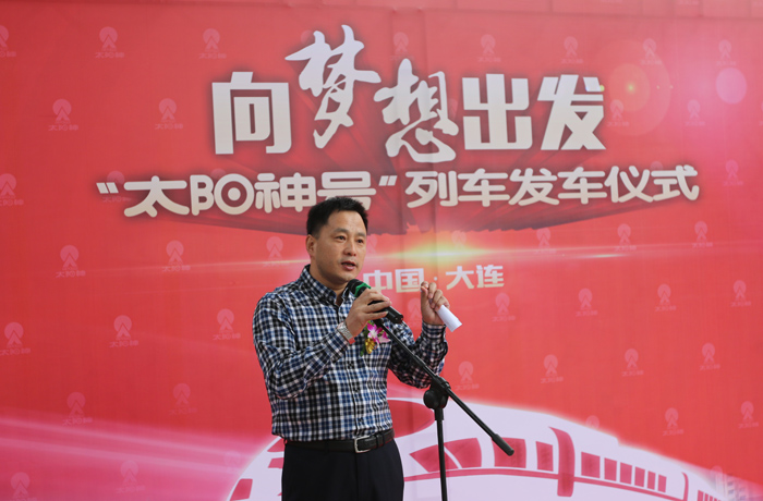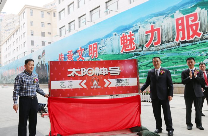 朱总和鞠总共同为此次“太阳神号”列车首发揭幕 最后,在现场100多名太阳神伙伴以及广大乘客的见证下,朱总和鞠总共同为此次“太阳神号”列车首发揭幕!活动现场红绸飘扬、人声鼎沸,这一刻开始,从这里出发,“太阳神号”列车将向东北乃至全国人民展现太阳神的实力和风采。 |