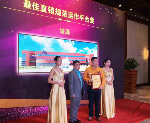黄旌轩先生代表铸源公司接受荣誉表彰 【直报网北京11月4日讯】(铸源)2016年11月1日,以“展望未来直销新秩序”为主题的第三届博鳌直销高峰论坛在美丽的“椰城”海口盛大召开。会议特别邀请高校学者、行业专家、企业高管、行业精英和各大媒体共同探讨行业发展趋势、展望行业前景等课题。天津铸源健康科技集团有限公司副董事长兼总裁黄旌轩先生、战略顾问高勇先生应邀出席了此次会议。 在本届论坛的表彰环节,铸源集团荣膺“最佳直销规范运作平台奖”。铸源集团一直坚守回归行业的本源本质,把学习、实践、积累、改革作为企业发展的核心动力,让市场得以规范、稳健、永续发展。并凭借健康优质的产品赢得了良好的社会口碑。集团战略顾问高勇先生荣膺“最佳创业导师奖”。