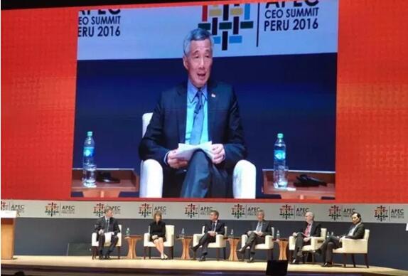 (新加坡总理李显龙围绕“全球经济的增长点在哪里”进行发言)