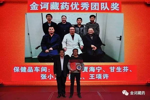 董事长艾措千向俞瑞华副总裁兼财务总监颁特殊贡献奖 本次表彰暨文艺联欢会,青海总部员工们表演了自编自导的文艺晚会,有合唱、独唱、舞蹈、相声、诗朗诵等,中间穿插多轮幸运大抽奖活动。现场气氛欢快热烈,每一个节目都是精心编排,充分展现了金诃藏药浓郁的满足文化氛围,金诃企业文化的魅力,展现了金诃人的活力与创新的精神面貌。文艺联欢会在和谐、温馨、欢乐的气氛中进行,最后由执行总裁牛豫娟带领团队献唱的歌曲串烧为晚会画上了圆满的句号。 (原标题:金诃藏药举行2016年度表彰暨文艺联欢会) 责任编辑:小宇 解读新闻热点、呈现敏感事件、更多独家分析,尽在以下微信公号,扫描二维码免费阅读。