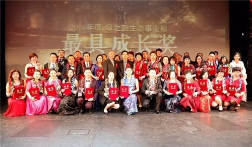梦想之巅 王者荣耀 闪耀的舞台,属于劈波斩浪的领航人,荣誉的殿堂,属于无怨无悔的追梦人。 颁奖典礼上,在司仪的引领下,“绿之韵生态事业部2016年度最具成长奖”、“绿之韵生态事业部2016年度优秀精英奖”、“绿之韵生态事业部2016年度卓越领导奖”、“绿之韵集团2016年度豪华奔驰奖”获得者依次走上荣耀舞台,接受公司的隆重表彰和伙伴们的深切祝福。这一刻,他们终于看到所有梦想都开花,这一刻,他们是全场最耀眼的明星,所有聚光灯都为他们绽放,所有掌声都为他们喝彩,他们是绿之韵生态的骄傲!是全体生态人的榜样! ![]() ![]() ![]() ▲绿之韵集团生态事业部“2016年度最具成长奖”颁奖现场 ![]() ![]() ![]() ▲绿之韵集团生态事业部“2016年度优秀精英奖”颁奖现场 ![]() ![]() ![]() ▲绿之韵集团生态事业部“2016年度卓越领导奖”颁奖现场 ![]() ▲绿之韵集团“2016年度豪华奔驰奖”颁奖现场 在全场最热烈的掌声中,刘尚线总裁发表了重要讲话,刘总回顾了生态纺织一路走来的发展历程,为全体生态人共同努力创造的今日辉煌感到自豪:“经过九年发展,绿之韵生态在中国是目前最大的以竹纤维运用为主体的终端企业,而中国是全世界竹资源一半的占有者,竹纤维发明属于中国,实际上我们是中国第一,也是全球第一。九年前我们是惊涛骇浪中的一只小帆船,在风浪中摸索前行,九年后的今天,我们绿之韵生态事业部已经是一艘巨大的平稳的邮轮,遨游四海。未来五年,我们目标每年保持50%增长,在2020年,让我们生态纺织销售超过20亿,让我们对国家税收贡献突破亿元”。对于生态健康领域,刘总也进行了展望:“大健康时代已然到来,生态健康产业将成为行业增长新引擎,万亿蓝海市场爆发在即,未来,企业将进入超高速发展期,我们将依托生态纺织业,生态健康业,走出国门,服务全球70亿人。只要我们生态伙伴齐心协力,奋勇拼搏,一定能共享财富新浪潮!让我们一起做梦想的推动者,共同迎接绿之韵生态的精彩十年!” ![]() ![]()