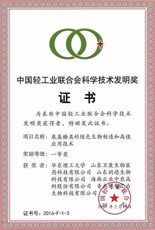 【直报网北京5月8日讯】(卫康)4月18日,中国轻工业联合会四届三次、中华全国手工业合作总社七届七次理事大会在杭州举行。会上颁发了2016年度中国轻工业联合会科学技术奖,177项科技成果获得奖励,其中技术发明一等奖4项,科技进步一等奖17项。 由赵黎明教授领衔,华东理工大学、山东卫康等单位共同完成的成果——“氨基糖类的绿色生物制造和高值应用技术”荣获“2016年中国轻工业联合会技术发明一等奖”。 ![]() “中国轻工业联合会科学技术发明奖”是由中国轻工联合会设立的最高轻工科技奖项,属于国家部级科技奖励,代表了轻工行业技术奖励的最高级别,被认为是轻工业的“荣誉勋章”。此次卫康荣获2016年度“中国轻工业联合会科学技术发明一等奖”是对公司科技创新能力及产品先进性水平的肯定。 ![]() 该成果发明了氨糖的发酵菌种、发酵和分离纯化工艺、氨糖单体定向聚合技术、高端氨基寡糖制备技术等关键技术,开发出多个具有良好市场效益的新产品,实现了氨基糖类产业的生物制造、过程绿色制造和清洁生产,探明了相关生理活性分子机理,填补了多项技术空白和理论空白,有效提升了我国功能寡糖生物制造和分离提取技术水平,对我国氨糖药物开发等均有重要贡献,极大促进了氨基糖类在食品、医药、农业等领域的应用。 ![]() ![]() 该技术实施产业化推广,显著提高了公司的整体技术水平和产品质量,有效地提高了公司产品在市场上的核心竞争力,取得了巨大的经济效益和显著的社会效益,对于我国食品、医疗健康业和农业等发展具有重要有意义。 ![]()