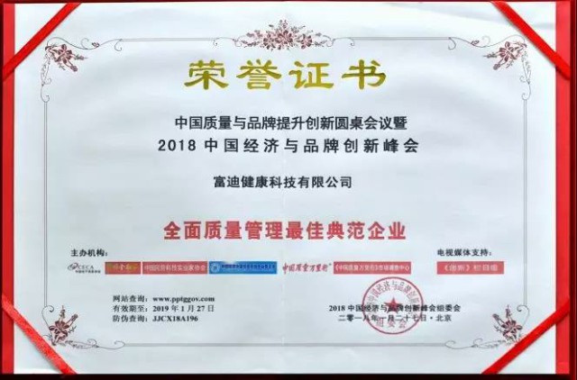 【直报网北京1月30日讯】(富迪)1月27日,由中国电子商务协会、中国金融家主办的“中国质量与品牌提升创新圆桌会议暨2018中国经济与品牌创新峰会”在北京全国政协礼堂隆重举行,富迪健康科技有限公司营销副总裁栾宝田先生代表富迪公司出席了此次活动。在颁奖盛典环节,富迪健康科技有限公司荣膺 “全面质量管理最佳典范企业”和“中国质量万里行上榜推荐品牌”殊荣。 ![]() 获奖奖牌 ![]() 获奖证书 一路走来,富迪在产品质量的把控与服务要求的质量所付出的努力,得到了无数的肯定和赞誉,这是富迪前行的动力,也会成为我们卓越的行动力。 随着新直销的井喷式增长和大健康产业的快速崛起,富迪凭借一款突破性产品“富迪肽”直冲大健康行业,在产品研发、品质服务上独具匠心,另辟蹊径,并以此为契机,整合资源、优化配置,开创新模式,顺势而力促发展,乘势而上求突破,初心未改,大爱至上,一路高歌猛进,实现第三次腾飞跨越式发展。在短短几个月的时间,几乎零差评,得到了广大顾客的青睐与认可。 ![]() 获奖奖牌 ![]() 获奖证书 2017 年是富迪跨入第三次腾飞的一年,也是国家开启新时代新征程的一年,直销向新零售转型的开局之年。我们要树立必胜信念、继续埋头苦干,贯彻责任 、担当、付出 、合作 、共赢 、高效的发展理念,全面布局新零售发展商业,布局产品根本,重塑直销大爱为本商业帝国! ![]() 栾宝田先生代表富迪公司登台领奖 今后富迪也会在“用心服务、质量严格把关、信誉不断增强”方面继续努力,严格把控每一种产品,每一道工序,保证到用户手里都是放心的产品,更加完善线下体验服务,树立世界眼光,抢抓全球化发展新机遇,增创国际竞争新优势。 ![]() 栾宝田先生与出席活动的嘉宾代表合影留念