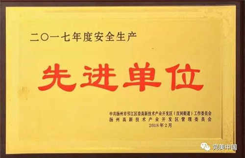 【直报网北京2月28日讯】(完美)2月23-24日,扬州市邗江区、高新技术产业开发区分别召开经济社会发展表彰大会。扬州完美凭借突出的发展业绩及社会贡献,荣获邗江区2017年度“纳税特别贡献奖”“立功企业一等功”,以及扬州高新区2017年度“纳税贡献特等奖”“先进基层党组织”“社会稳定工作先进单位”“安全生产先进单位”多项殊荣,获得政府部门及社会各界的充分认可。 ![]() 立功企业一等功 业绩突出,纳税创新高 扬州完美2017年业绩突出,纳税6.42亿元,成为邗江区的纳税大户。2017年,扬州完美一期项目加大智能化投入,不断提升产能和效率,扬州完美二期项目也逐步投入试产,成为新的业绩增长点。 ![]() 纳税特别贡献奖 非公党建,成绩斐然 扬州完美党支部自2014年成立以来,不断开展党组织建设,强化学习、开拓创新,积极发挥党员带头作用,加强企业文化建设和团队凝聚力,形成了企业经营与党建工作互促共荣的良好局面,为企业成长营造健康氛围。 ![]() 狠抓安全,护航生产