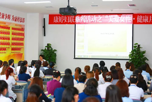 【直报网北京5月17日讯】(康婷)2018年5月16日,为更好的关爱妇女健康,提高妇女朋友的保健及妇科疾病防治意识,康婷公司妇联组织开展了“关爱女性·健康月”知识讲座,康婷公司总裁杨琪女士携公司妇女代表共计100余人参加了此次讲座,由妇联副主席田玺荣担任主持人。 讲座中,康婷家人医院妇科主任于洁向大家讲解了不同时期的保健知识、常见的妇女疾病以及女性疾病的早期预防和治疗等相关方面的知识。 ![]()