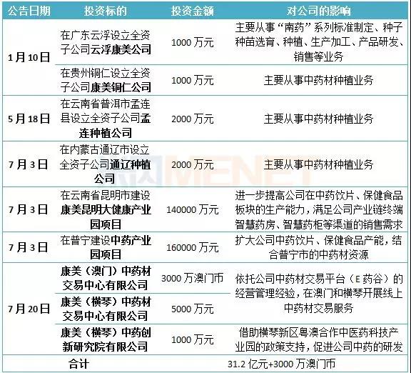 【直报网北京7月30日讯】(米内网)7月27日,中药饮片龙头企业康美药业发布公告,经2018年第一次临时股东大会审议,通过了关于投资建设康美普宁中药产业园项目以及康美昆明大健康产业园项目等议案,上述两个项目涉及金额分别为16亿元、14亿元。据公开资料统计,2018年(统计截至2018年7月27日)康美药业共在8个地区投资了中药饮片、中药材贸易相关业务,投资总额合计超过30亿元。2017年年报显示,康美药业中药饮片业务营收达到61.58亿元,同比增长30.93%,中药材贸易业务营收达58.57亿元,同比增长1.18%。 康美药业:中药板块营收达120亿 在7月上旬公布的2017年度中国制药工业百强榜中,康美药业排在第八位,年报数据显示,2017年该公司总营收达264.77亿元,净利润为41.01亿元。中药板块是公司目前营业收入占比最高的业务板块,其中中药饮片业务在行业中处于龙头地位,产销规模排名第一;中药材贸易方面,公司充分利用普宁中药材专业市场的地域优势,从2006年起逐步开展中药材贸易业务,中药材贸易业务已经发展成为公司的核心业务之一。2017年数据显示,康美药业的中药饮片、中药材贸易合计营收达120亿元。 图1:2015-2017年康美药业中药饮片的业绩情况(单位:亿元) ![]() (数据来源:上市公司年报) 康美药业作为中药饮片行业龙头企业,最近几年中药饮片业务的营业收入快速增长,每年都上一个新台阶,毛利率保持在34%~35%左右。 近年来,国家层面对中药饮片行业的监管愈趋严格,行业集中度得以提高,康美药业构建了中医药产业链一体化业务体系,在上游形成对中药材供应核心资源的掌握,有效保障中药饮片的产品质量和可追溯,符合行业发展趋势和监管方向,未来发展潜力巨大。 康美药业近年来已搭建了现代化医药物流系统和在下游形成的集医疗机构资源、药房托管、智慧药房、OTC零售、连锁药店、直销、医药电商、移动医疗于一体的全方位多层次营销网络,有利于公司发挥协同优势降低综合运营成本,在较短时间内发挥渠道优势形成对新增产能的消化,从而迅速扩大中药饮片业务规模,提高市场占有率。 图2:2015-2017年康美药业中药材贸易的业绩情况(单位:亿元) ![]() (数据来源:上市公司年报) 受市场供求、种植面积增减、产量丰欠、气候变化、自然灾害、人为炒作等多个因素影响,近年来部分中药材价格存在一定的波动。 为提高公司在中药材贸易业务的市场份额,加强对上游原材料供应的主动权及获取更多的信息渠道,近年来康美药业陆续收购了国内几大中药材专业市场,结合自主发展的中药物流系统,公司的产业链流通体系已渐成规模和品牌效应,逐步掌握了中药材市场、信息、价格等方面的主动权。2017年度,康美药业中药材贸易品种已达138多个,毛利率逐步上涨。 豪掷30多亿,囊括中药全产业链 表1:2018年1-7月康美药业中药饮片相关的投资及并购情况 ![]() (数据来源:上市公司公告) 据上市公司公告粗略统计,截至2018年7月27日,康美药业发布了6个关于投资中药业务的相关公告,其中投资开设了4家子公司发展中药材种植业务,投资开设2家子公司发展中药材贸易,投资开设了研究院开展中药研发,还有两大产业园项目备受关注,这两大产业园的投资金额均超10亿元。 两大产业园投资额均超10亿,“中药王国”越筑越牢 表2:康美昆明大健康产业园项目建成后可达规模 ![]() (数据来源:上市公司公告) 7月3日,康美药业发布公告称,根据公司总体发展战略规划及市场需求,为进一步提高公司在中药饮片、保健食品板块的生产能力,满足公司产业链终端智慧药房、智慧药柜等渠道的销售需求,提升公司核心竞争力,公司拟投资140,000万元在云南省昆明市建设康美昆明大健康产业园项目,总规划用地面积计约350亩。 项目建设内容涵盖中药饮片、保健食品、制剂的制造生产,构建区域制剂中心,并投建仓储物流中心,将立足昆明、面向西南,打造集中药制造、仓配、药事综合服务为一体的生态化、集约化、专业化的现代医药健康产业园区。项目建设期为3年,项目所需资金为公司自筹。 据悉,项目建成后将大幅度提高公司的经济效益和综合竞争能力,中医药新增年产值约268,000万元,实现可持续的快速发展。目前该规划项目已经通过了公司股东大会的审议。 表3:康美普宁中药产业园项目建成后可达规模 ![]() (数据来源:上市公司公告) 7月3日,康美药业再次发布公告称,为进一步扩大公司中药饮片、保健食品产能,提高产品品质,完善产品结构,拓展医院药房、智慧药房、连锁药店的业务,满足市场需求,公司拟投资160,000万元在普宁建设中药产业园项目,建设集“研发、生产、物流配送、配套服务于一体”的综合型中药产业园,项目总规划用地面积约332亩。项目建设期为3年,资金来源为公司自筹。 康美药业表示,本项目的建设主要是为扩大公司中药饮片、保健食品产能,提升公司物流服务能力,充分发挥公司全产业链优势,结合普宁市的中药材资源,打造普宁市最大的中药饮片及保健品产业园。项目建成后将有利于丰富公司中药饮片产品品类,扩大中药饮片市场份额,为公司全产业链下游智慧药房、智慧药柜等药事服务打下坚实的基础,预计本项目达产后将对公司的业绩增长产生正面影响。目前该规划项目已经通过了公司股东大会的审议。 结语