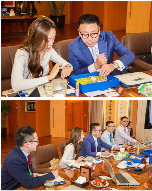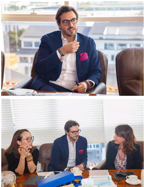 【直报网北京10月23日讯】(绿叶)2018年10月19日,全球知名化妆品巨头意大利INTERCOS集团下属瑞士CRB公司总裁Alessandro(亚历山大)先生和意大利INTERCOS集团创意产品总监Mirna(米安娜)来访绿叶洽谈新品合作,绿叶科技集团董事长徐建成先生携集团高管出席座谈会。双方就护肤技术、科研创新、产品升级、市场规划等多方面进行深度交流,并重点洽谈瑞士CRB为绿叶专属定制的高端护肤品。 下午2时,亚历山大总裁与米安娜总监抵达绿叶总部,徐建成董事长携集团高管热情迎接,并陪同二位绿叶老朋友全面参观了绿叶总部旗舰店与产品展厅等处,深入了解一年来绿叶发展新变化。在简洁大气的旗舰店中,琳琅满目的商品,熙熙攘攘的顾客,热火朝天的抢购氛围获得亚历山大总裁与米安娜总监的连连称赞。 在总部产品展厅中,近3000款品类丰富、引领潮流的新品让亚历山大总裁与米安娜总监大开眼界、啧啧称奇。尤其是绿叶自主研发、添加真材实料“黄金”的希诺丝黄金亮肤系列护肤品,其前卫的护肤理念和奢华的护肤配方收获两位专家的认可。在香水专区,一瓶瓶绿叶独家研制的男士香水瞬间吸引亚历山大总裁的目光,清新典雅、低调沉稳的海洋调香水气息,立即俘获亚历山大总裁的“芳心”。 |