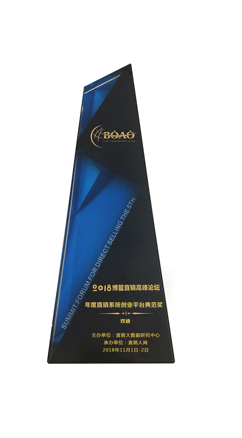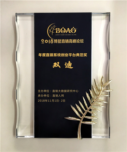 【直报网北京11月6日讯】(双迪)11月1日至3日,以“重构‘人·货·场’赋能‘新·直·消’”为主题的第五届博鳌直销高峰论坛在海南三亚举行。双迪股份董事长潘晓非应邀出席论坛,并捧获两项重量级大奖。 ![]() ![]() 潘晓非董事长与原国家工商总局直销监督管理局局长沈根申、原江苏省工商局公平交易局副局长朱永才在前排就坐 论坛上,潘晓非董事长与其他来自全国各地的企业高管、行业专家、顶级供应商及各方媒体,就未来直销行业在多元化、爆发式增长的全新消费场景下的市场理念革新与企业发展趋势进行了深入研究探讨。潘总还结合双迪公司一体两翼战略、直销模式创新、如何提升产品重消等议题做大会发言。 ![]() 凭借突出的平台优势和先进的科技优势,双迪在本届论坛上荣获2018博鳌直销高峰论坛“年度直销系统创业平台典范奖”,双迪知水微型富氢制水器获“消费者金口碑产品奖”。 ![]() ![]() 年度直销系统创业平台典范奖 ![]() ![]() 消费者金口碑产品奖-知水微型富氢制水器 作为国家高新技术企业,双迪始终围绕“吃喝睡养吸、排补通调预”,以“立足生命科学,造福人类健康”为宗旨研发生产出一系列高科技产品,并应用于人们的日常生活。其中,双迪知水微型富氢制水器依托独家专利“富氢水”技术优势,人性化设计,方便快捷,随时随“智”造出集高富氢、负电位、小分子团等多重保健功能于一体的健康饮用水,颇受广大消费者的青睐。 ![]()