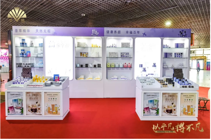 护肤品区,柜台上陈列着琳琅满目的荣格颜值系列护肤品,吸引着家人们前来咨询与体验