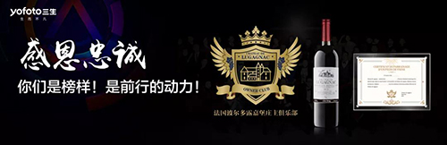 此次嘉年华上,三生忠诚功勋及所有的三生钻卡会员们被授予“法国波尔多露嘉堡酒庄荣誉庄主”的荣誉,每位忠诚功勋都将拥有露嘉堡酒庄的一棵专属葡萄树,并且长期命名!长期拥有!每年还能收到两瓶印有个人生日或夫妻结婚纪念日的珍藏版露嘉堡葡萄酒。