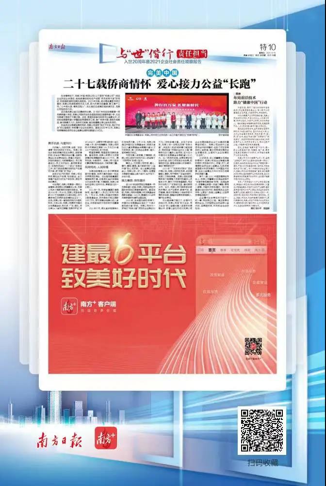 【直报网北京12月20日讯】(完美中国)12月16日,与“世”偕行 共赢未来——入世20周年企业家高峰对话暨南方致敬2021年度盛典在广州举行。本次活动由南方报业传媒集团、广东省商务厅联合主办,南方日报、南方+客户端承办。 期间,2021南方公益传播奖榜单正式出炉,今年是南方公益连续第六年进行“南方公益传播奖”评选,活动以“共益未来”为主题,聚焦乡村振兴、可持续发展、公益慈善等领域,报名参选的企业超百个。